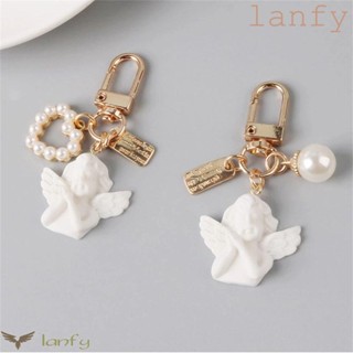 LANFY Retro Angel Key Rings Girl Female Earphone Case Chain Pearl Keychain Love Heart Key Accessories Chain Ornaments Bag Pendant Key Lanyard Small Gift Women Car Keyring
