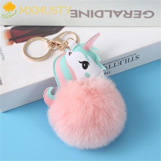 MXMUSTY Móc Khóa Kỳ Lân Phối Banh Lông Thỏ Mềm 8cm Dễ Thương
