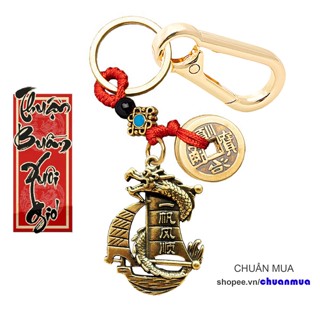 Móc Khóa Đồng Đúc Đặc Nguyên Khối Chiếc Thuyền Rồng phong thuỷ ( Phụ Kiện Phong Thủy - ý nghĩa Thuận Buồm Xuôi Gió)