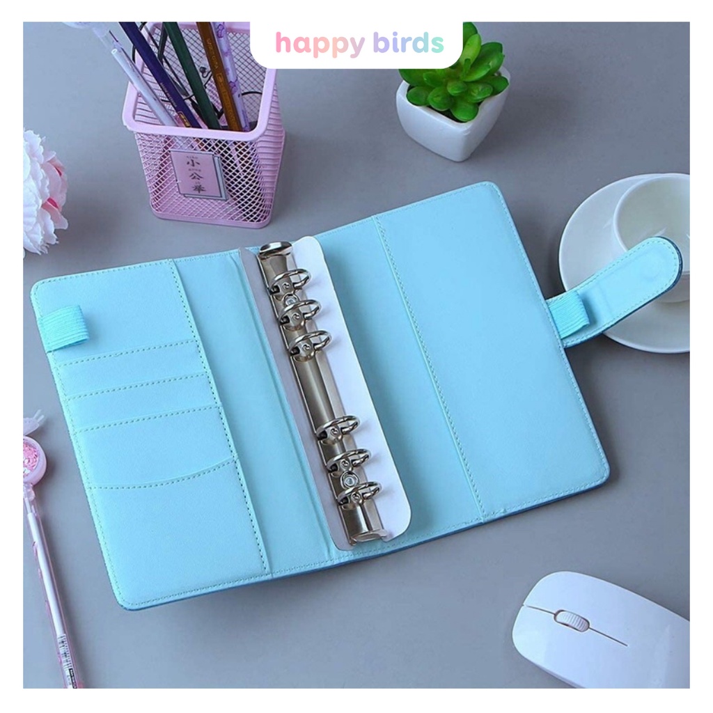 Sổ tiết kiệm đựng tiền chia ngăn chi tiêu thông minh bìa da PU sổ còng A6 ghi chú đựng thẻ đựng tiền ghi chú