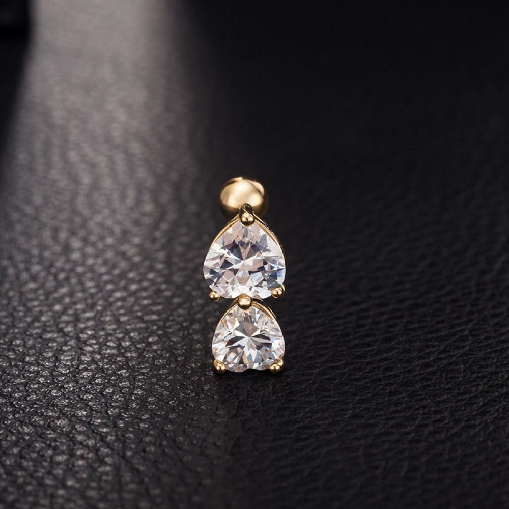 Kích thước '1,6 '0,8cm Vật chất : Thép phẫu thuật và kim cương giả Chiều dài '1cm Đường kính '0,5cm Giới tính Trang sức cơ thể thời trang ' thương hiệu mới 'chất lượng cao Màu “ Vàng ”silver 1 cái vòng nút thắt lưng rốn Vòng rốn Cơ thể bụng Hai trái tim Xuyên nút vàng Thanh đảo ngược Pha lê mới Phổ biến