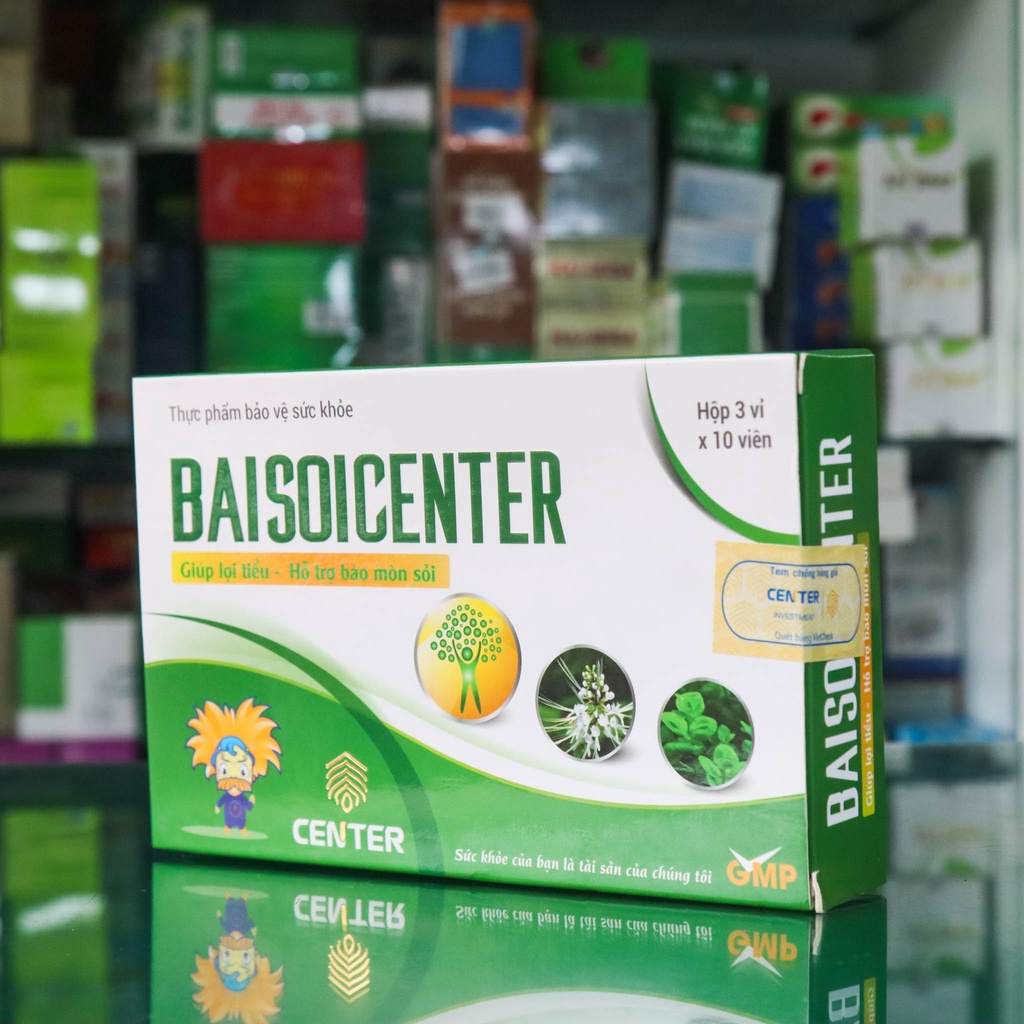 · Thông tin mô tả sản phẩm là hoàn toàn chính xác với công bố sản phẩm đã đăng ký với Bộ Y tế, 100% sản phẩm đều có giấy phép lưu hành từ Bộ y tế · Cam kết tất cả các sản phẩm cung cấp cho Quý khách hàng đều mới 100%, có nhãn hiệu và xuất xứ rõ ràng. _x000D_ ● Công dụng Bài sỏi center: • Giúp lợi niệu bài sỏi, hổ trợ quá trình tán nhỏ và bài tiết sỏi thận, sỏi bàng quang, sỏi túi mật, sỏi ống dẫn mật. Hỗ trợ làm sạch và hạn chế viêm đường tiết niệu, giúp phòng ngừa tái phát sỏi thận, sỏi niệu quản, sỏi mật.