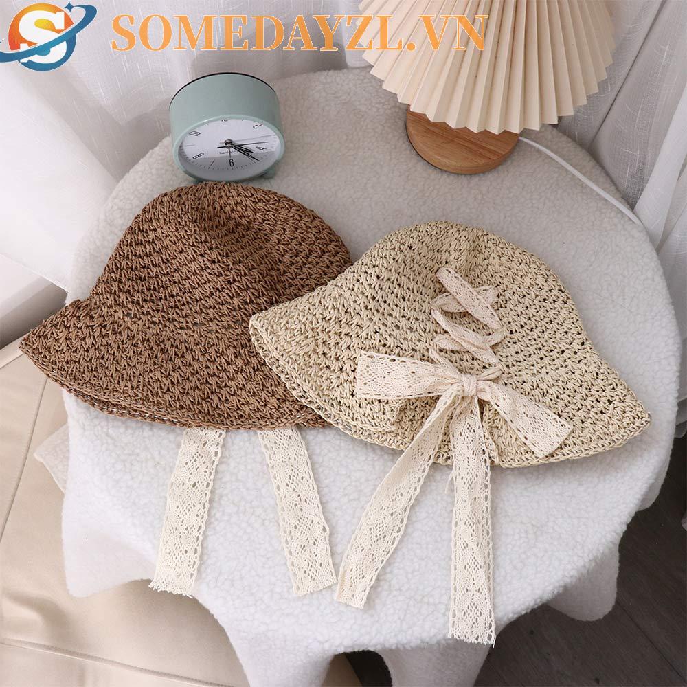 Giới thiệu SOMEDAYZL Mũ Cói Chống Nắng Đi Biển Đính Nơ Phong Cách Anh Quốc Cho Nữ