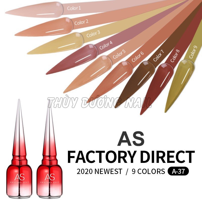 Sơn gel AS là một trong những loại sơn được ưa chuộng và sử dụng nhiều nhất trong các cơ sở làm nail, spa tại Việt Nam. Sơn gel AS có chất sơn đặc, độ bóng cao và bền màu trong thời gian dài, với bảng màu đa dang, tự nhiên trên 1000 màu đủ tất cả các tone, làm vừa lòng cả những khách hàng khó tính nhất. Sơn gel AS có mức giá vừa túi tiền với người dùng Việt, cách sử dụng rất đơn giản, từ thợ nail, người nội trợ đến nhân viên văn phòng điều có thể sở hữu cho mình những màu sơn ưa thích để tự sơn tại nhà. Sơn gel AS với các bảng màu nổi bật: Bảng màu nhũ giả bột MJ đang làm mưa làm gió, bảng màu sơn lông với 9 màu sắc cuốn hút, bảng màu YC với tone xanh mát mẻ, bảng màu LW có tone màu lạnh sẽ không để bạn phải thất vọng.