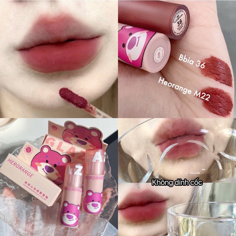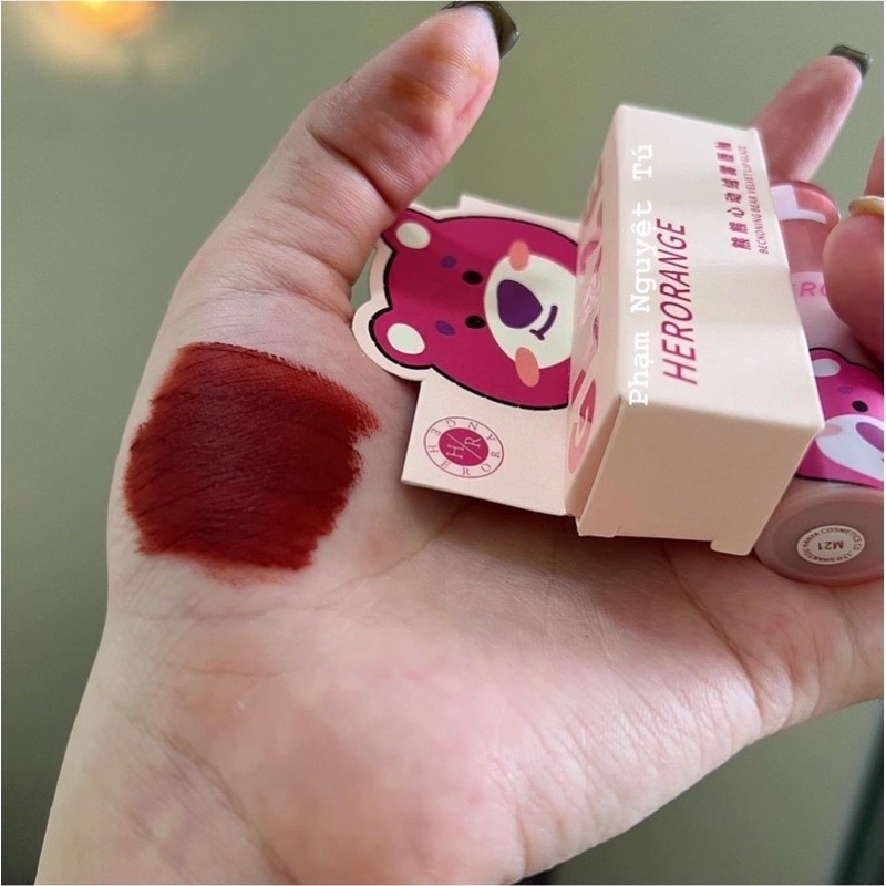 Giới thiệu Son kem Herorange gấu dâu đáng yêu nhỏ xinh mềm môi chính hãng