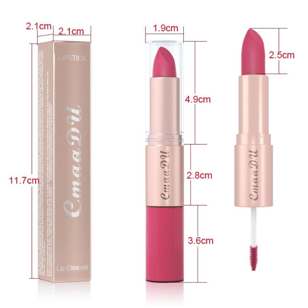 Thương hiệu mới và chất lượng cao ' Tên sản phẩm: Son môi hai đầu hai trong một Chức năng: Cải thiện làn da Màu: 01, 02, 03, 04, 05, 06, 07, 08, 09, 10, 11, 12 Thời hạn sử dụng 3 năm Kích thước gói sản phẩm: 11,7 * 2,1 * 2,1cm Nội dung sản phẩm tịnh: 3,5g Tính năng sản phẩm ' Bộ son môi dạng lỏng 1,2 trong 1: Với sự kết hợp cẩn thận của hai loại son môi khác nhau, bạn không còn phải vật lộn với việc lựa chọn màu sắc, son bóng phù hợp đủ để đáp ứng hoàn toàn mọi nhu cầu của các bạn gái. 2.Màu tự nhiên: Son môi dạng lỏng mờ có sắc tố cường độ cao cho đôi môi mờ đậm tức thì.Son môi siêu lâu trôi này chứa các thành phần dưỡng ẩm tạo cảm giác thoải mái, mềm mại và mượt mà không làm khô môi của bạn 3.Cốc chống dính & Sức mạnh duy trì: Đây là loại cốc chống dính và son môi không phai, sẽ kéo dài cả ngày khi khô hoàn toàn.Màu sắc không bị xê dịch khi uống nước và hôn vì độ che phủ cao. 4.Nhiều dịp: Mịn màng, tinh tế và thanh lịch, đôi môi nhẹ nhàng, thích hợp mặc trong mọi mùa, đặc biệt là đến công sở, hẹn hò, mua sắm, tiệc hè cùng bạn bè.Đây là một bộ son rất tiện lợi, rất đẹp, rất dễ mặc. 5.Quà tặng đẹp: Một thứ gì đó dành cho tất cả mọi người, cho dù bạn là phụ nữ hay sinh viên, cho dù bạn là người mới làm quen với trang điểm hay một chuyên gia trang điểm.Bạn có thể chọn sản phẩm này.