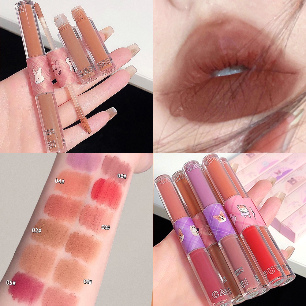 ★★★Mô tả sản phẩm★★★: Hai đầu dễ thương môi thú cưng bùn ; hai đầu tận hưởng hạnh phúc nhân đôi ~ Hai đầu lên xuống các màu khác nhau cũng có thể được xếp chồng lên nhau. một màu ba ~ Đặc điểm kỹ thuật Tên : Cappuvini Hai đầu Cheesy Pure Matte Mist Lip glaze Thương hiệu - Cappuvini Thành phần - polydimethylsiloxan , polyglycerin , v.v . Thời hạn sử dụng 3 năm Nhà sản xuất - Shantou Qi Trace Cosmetics Co. LTD Ngày sản xuất gần đây Nội dung thực — 2.2g *2'Double end) Kích thước ' 11,5 '2 '1,7cm Đối với môi Lợi ích - Làm đẹp đôi môi của bạn Loại da - Mọi loại da Sản phẩm bao gồm men môi “ 1 ”