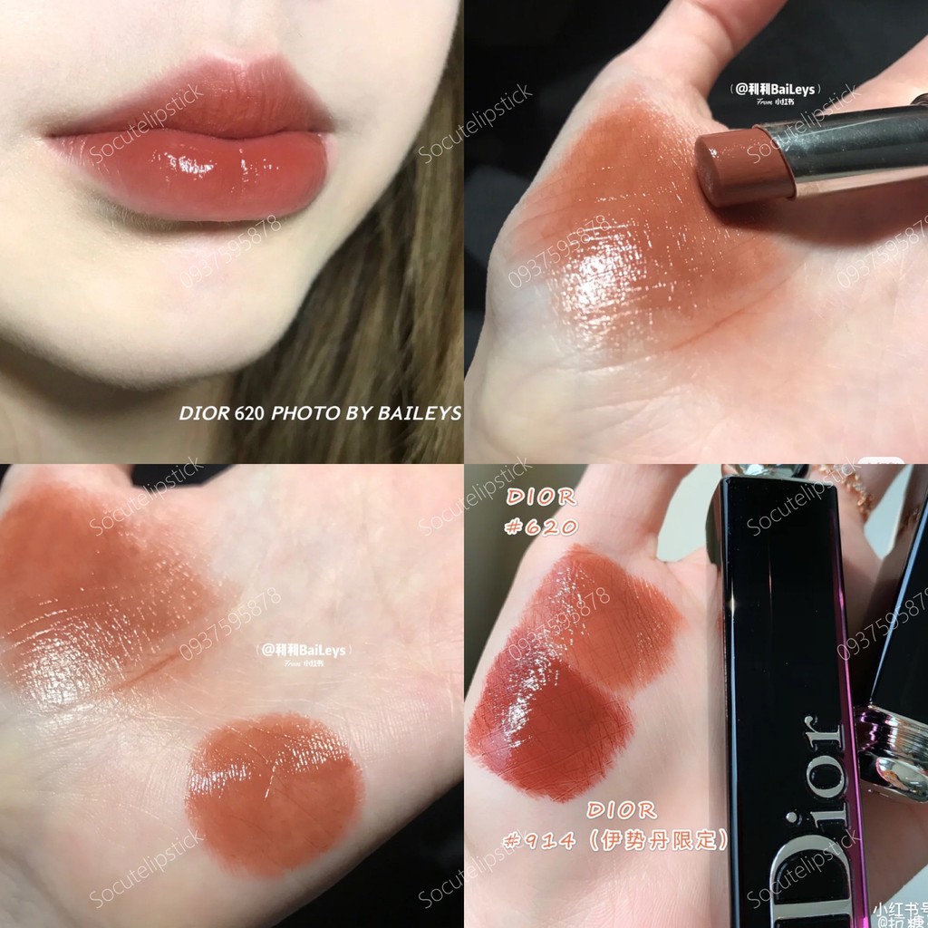 Màu 620 không khác gì tatoo 421 nhưng là bản son thỏi. Diior Addict Lacquer Stick Lipstick 620 - cà phê sữa. Vẫn là logo Diior in nổi lên thân nắp, nhưng với dòng son nhiều dưỡng mới ra này, nắp son đã được phủ lên một màu đen bóng, kết hợp cùng đường viền màu hồng trông “sang chảnh” hơn hẳn. Diior Lacquer mới đầu đánh sẽ hơi bóng tí nhưng tầm 2 phút là Matte mềm mịn ngay vào môi luôn, lại lâu trôi và mùi cực sang trọng, tạo hiệu ứng môi căng mọng tự nhiên.