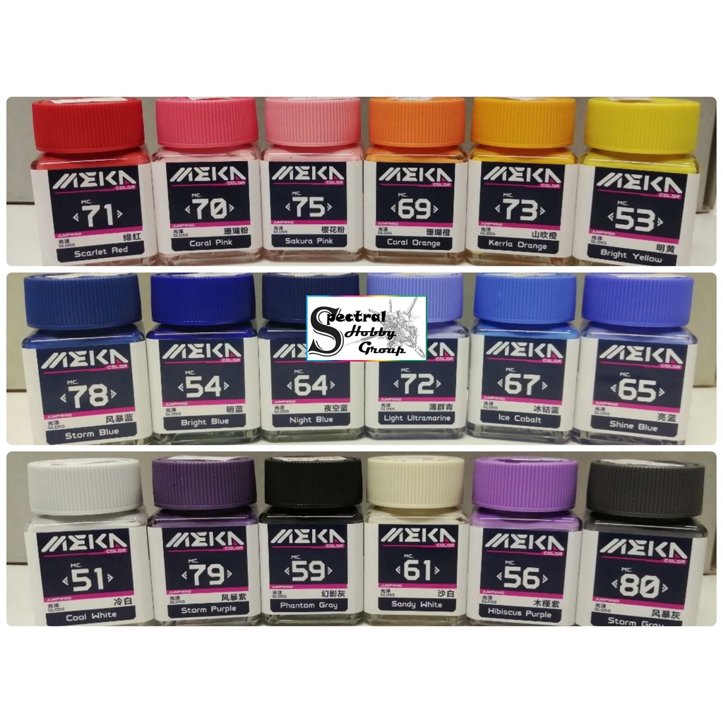 Sơn mô hình Tên sản phẩm : Meka color series / Full Color System for High Gloss Effect. Mã sản phẩm: MC51-80 Dung tích: 18-20ml / 1 lọ Hãng sản xuất : Jumpwind
