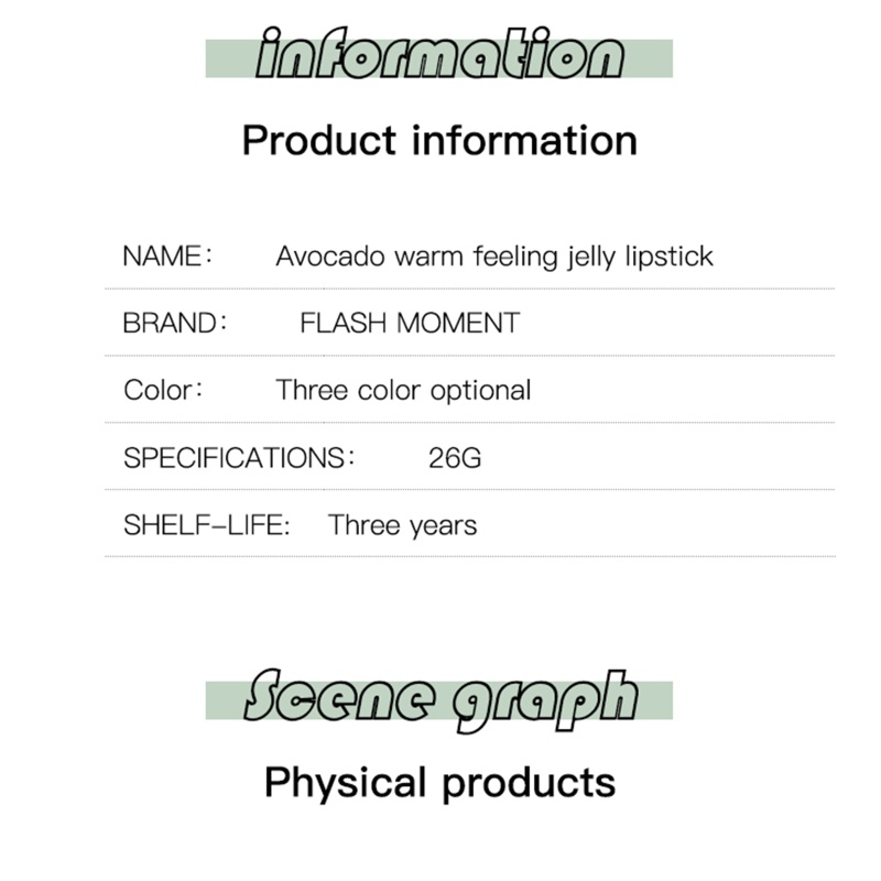 Nhiệt độ thay đổi Son môi dưỡng ẩm Son môi lâu trôi Son dưỡng môi có màu Tính năng - Son sẽ tự động đổi màu theo nhiệt độ môi và giá trị ph. Nhiệt độ càng cao thì màu càng đậm . Thay đổi màu ấm , 5 giây để đổi màu. hiển thị tự nhiên. màu môi hồng . Dưỡng ẩm lâu dài. dầu trái cây tự nhiên. an toàn và nhẹ nhàng. Gel độc đáo để thoa mịn trên môi trên . Kết cấu nhẹ và mềm .