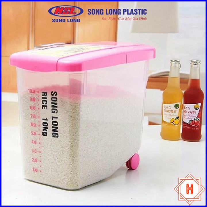 Giới thiệu Song Long Plastic Thùng đựng gạo có nắp 10kg, 15kg nhựa cao cấp có bánh xe { H }