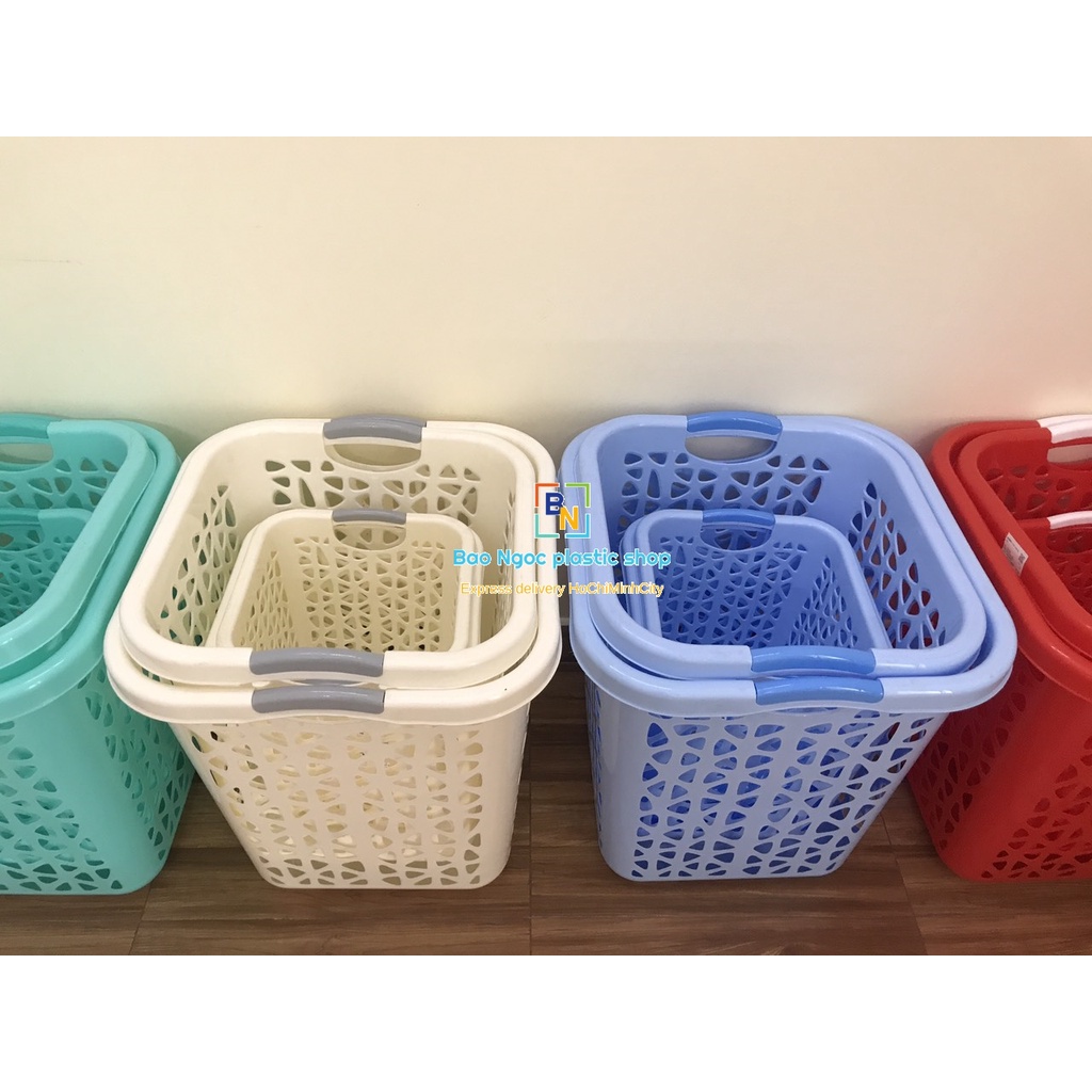 Sọt vuông đựng quần áo Duy Tân có kích thước (Dài x Rộng x Cao): - Nhí: 27 x 27 x 30 cm - Nhỏ: 29 x 29 x 33 cm -Trung: 34 x 34 x 38 cm -Lớn: 40 x 40 x 44 cm - Đại: 44 x 44 x 51
