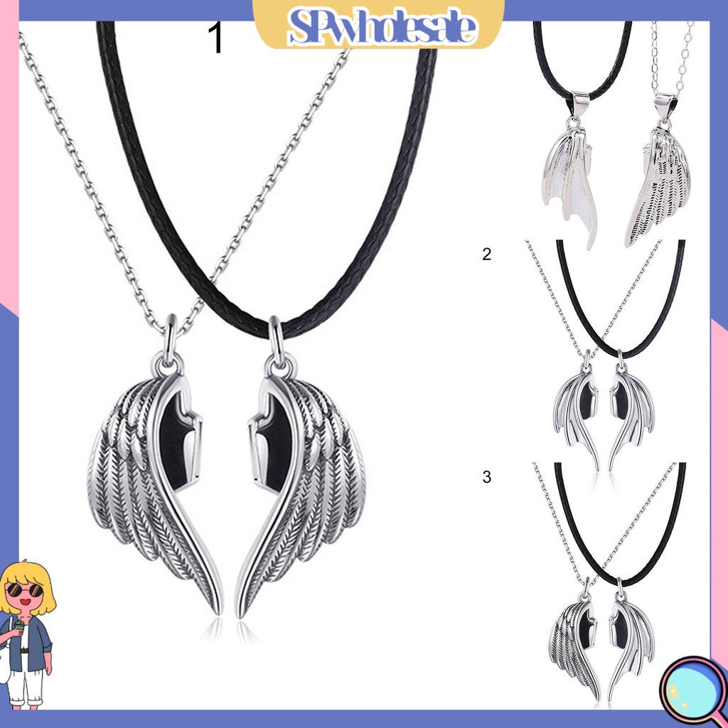 Giới thiệu <SPwholesale> 1 Cặp Vòng cổ Mặt Hình Đôi Cánh Thiên Thần Sáng Tạo Phù Hợp Làm Quà Cho Cặp Đôi