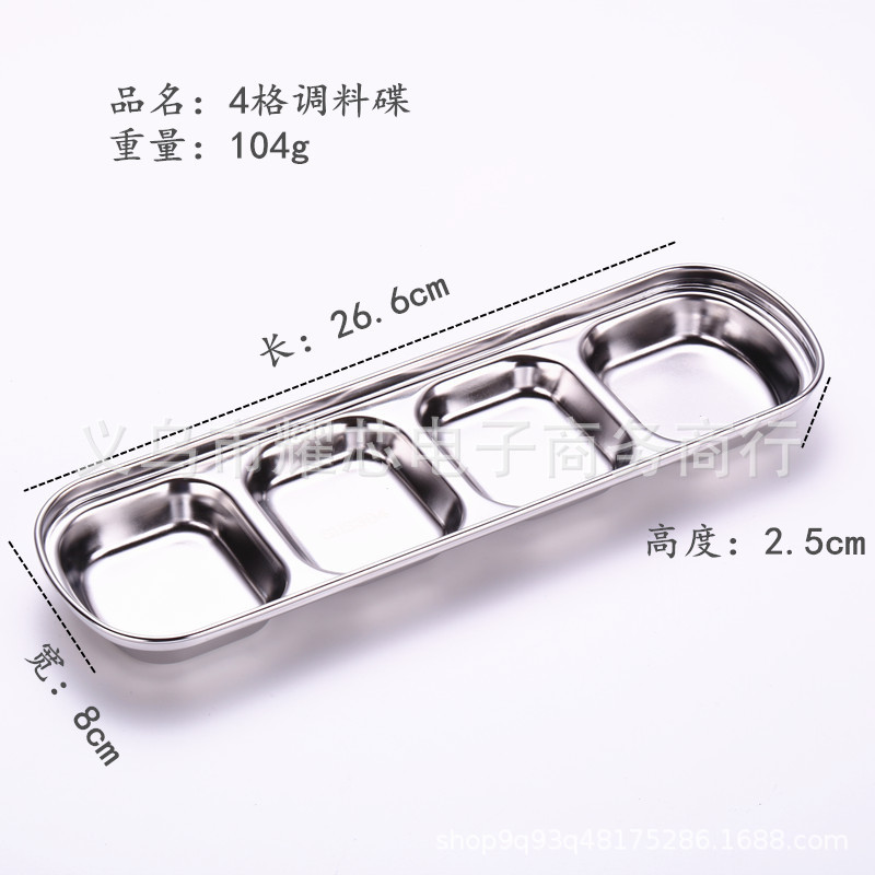 Giới thiệu Stainless steel condiment plate, barbecue dipping plate, kitchen double net plate.