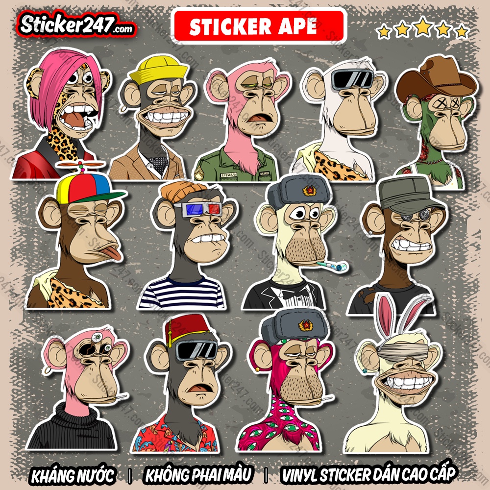 Sticker Ape NFT 🌈𝑭𝒓𝒆𝒆𝒔𝒉𝒊𝒑 Sticker Meme Chống Nước, Decal Dán Mũ Bảo Hiểm, Vali, Đàn, Laptop, Điện Thoại 🌟🌟 KHÔNG TRÙNG HÌNH - CẮT SẴN 🌟🌟 💖 Set "QUÀ TẶNG 12 STICKER" trị giá 25.000đ cho Đơn hàng có phân loại từ 50 Sticker 💖