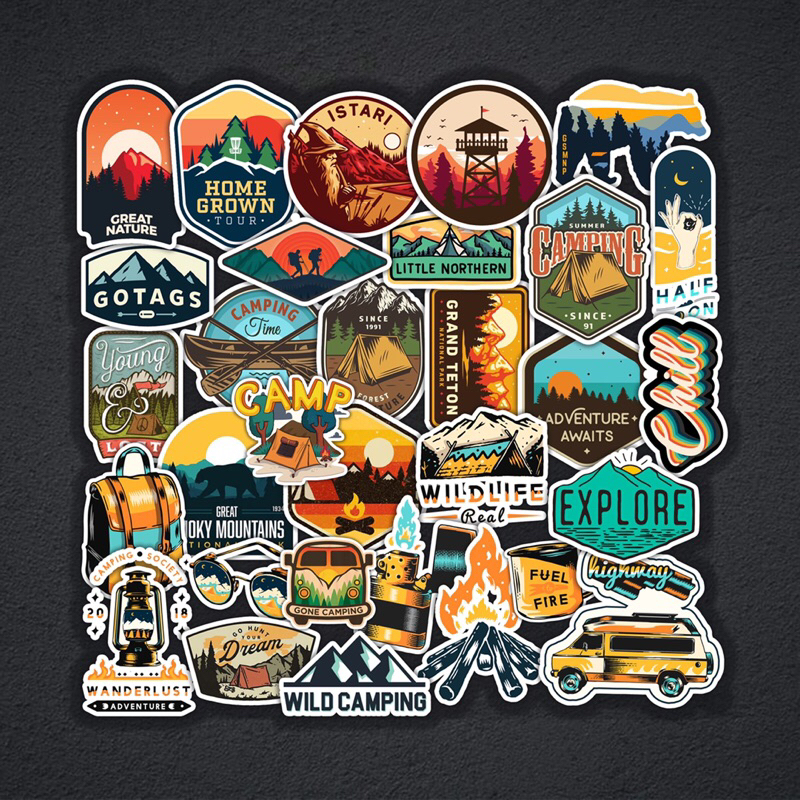 Giới thiệu Sticker Camping chống nước, hình dán mũ bảo hiểm, dán xe, điện thoại, laptop – Nghiện Sticker