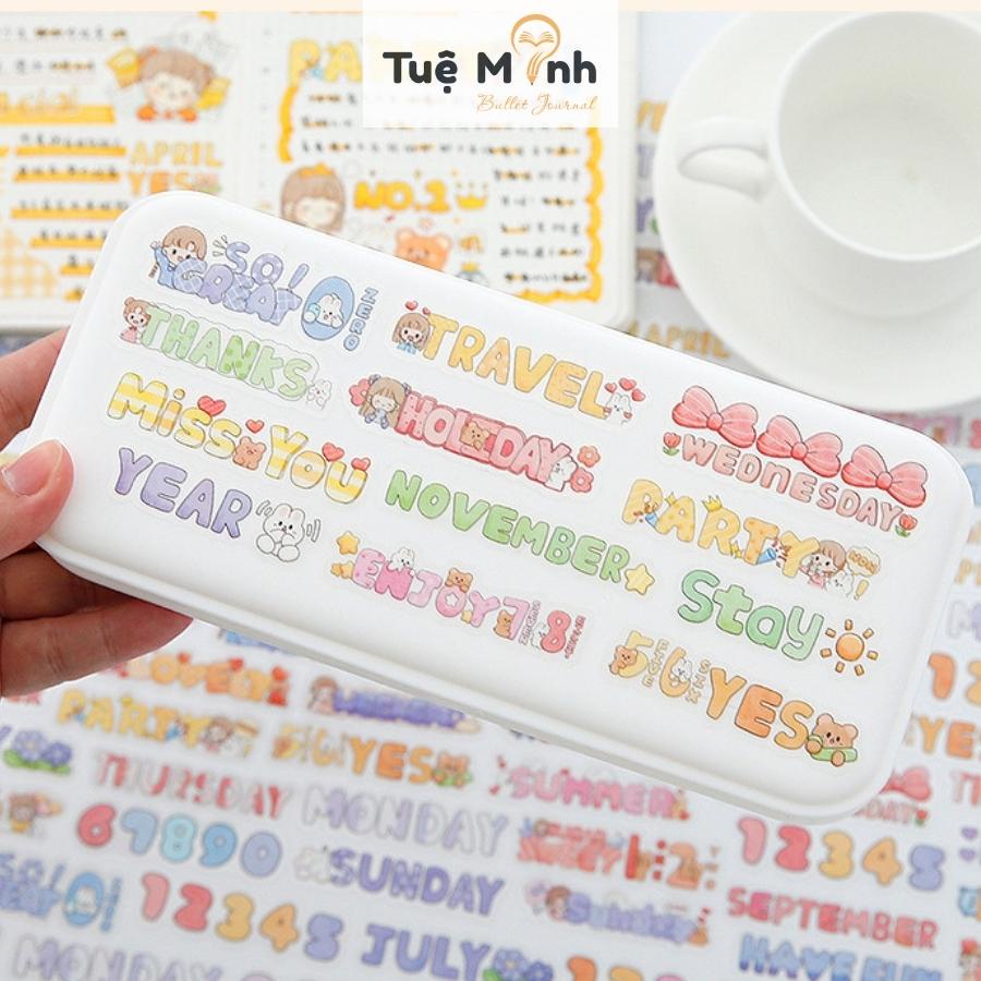 Giới thiệu Sticker chữ tiếng anh cute STI64, nhãn dán chữ cái, số trang trang trí sổ bullet journal