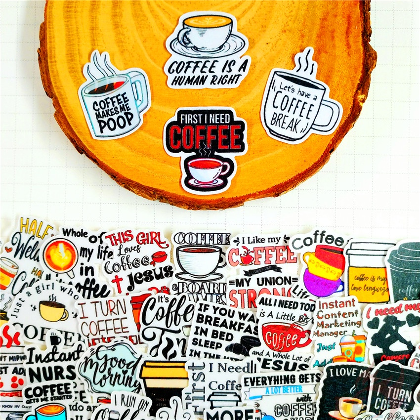 ★★★ Sticker Dán Trang Trí Nhật Ký Hình Coffee Q-1 Slang Mini ★★★ 60 Miếng Dán Trang Trí Album Thời Trang (Size: 2~3cm)
