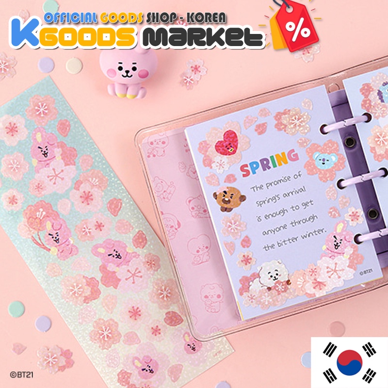 - The specifics are as follows: * Composition: BT21 Hologram sticker (Cherry Blossom) * Size: 62 X170(mm) * Material: PAPER