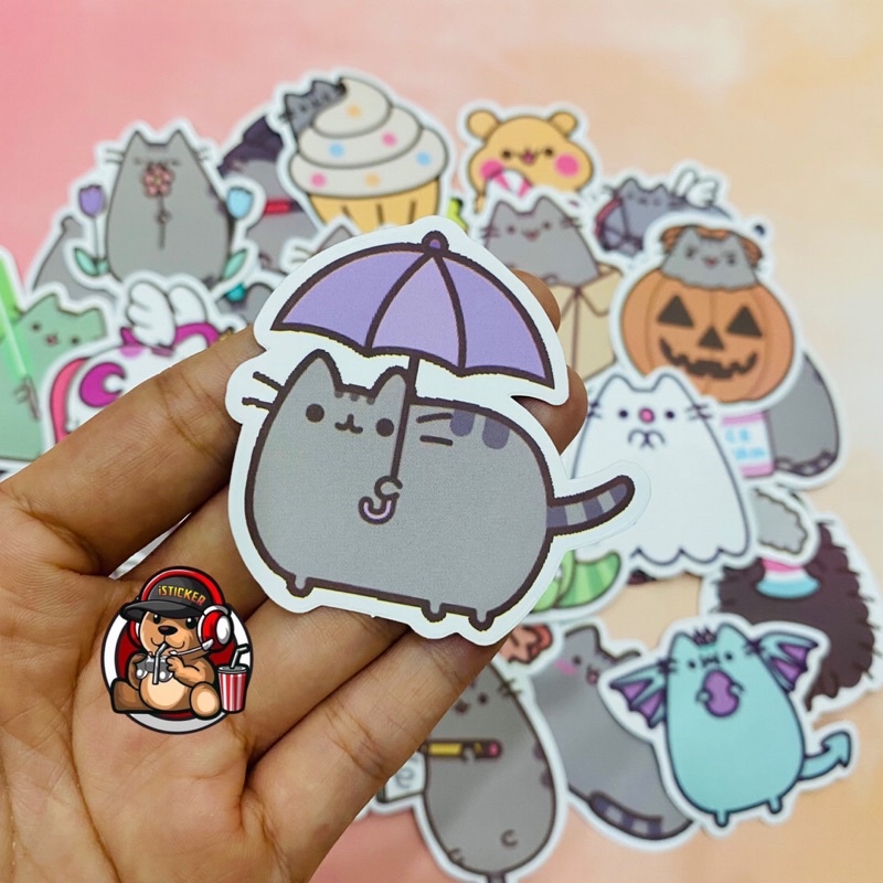 Sticker mèo ú PUSHEEN cute siêu dễ thương chống thấm nước dán mũ bảo hiểm, vali, laptop, điện thoại ..