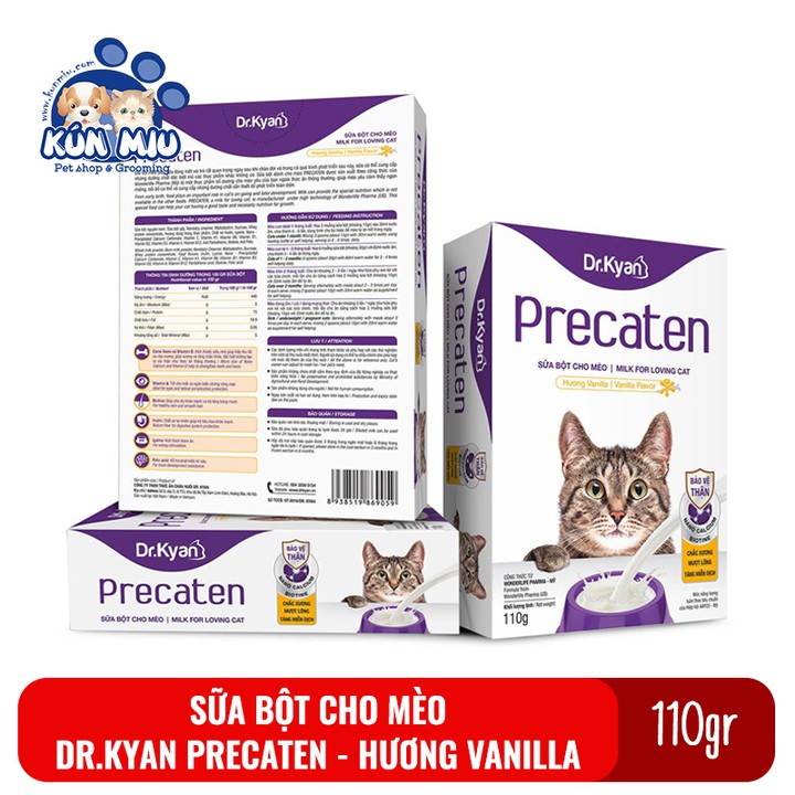 - Đối với mèo yêu sữa đóng một vai trò rất quan trọng sau khi chào đời và trong cả quá trình phát triển sau này, sữa có thể cung cấp những dưỡng chất đặc biệt mà các thực phẩm khác không có. - Sữa bột cho mèo PRECATEN được sản xuất theo công thức của WONDERLIFE PHARMA (mỹ) là một thực phẩm bổ dưỡng cho mèo yêu của bạn ngoài những thức ăn thông thường, giúp mèo yêu cảm thấy ngon miệng hơn, bồi bổ cơ thể và cung cấp những thứ cần thiết để phát triển toàn diện.