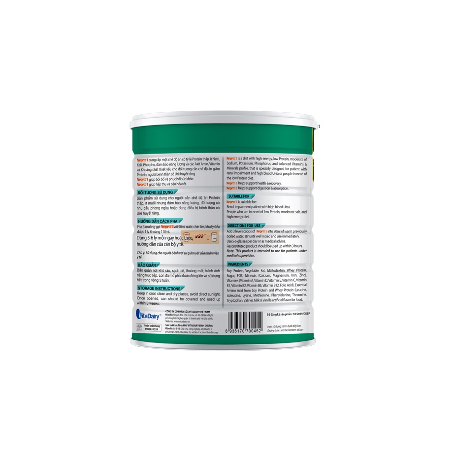 Giới thiệu Sữa bột Nepro 1 900g dành cho người bệnh thận chưa chạy thận - VitaDairy