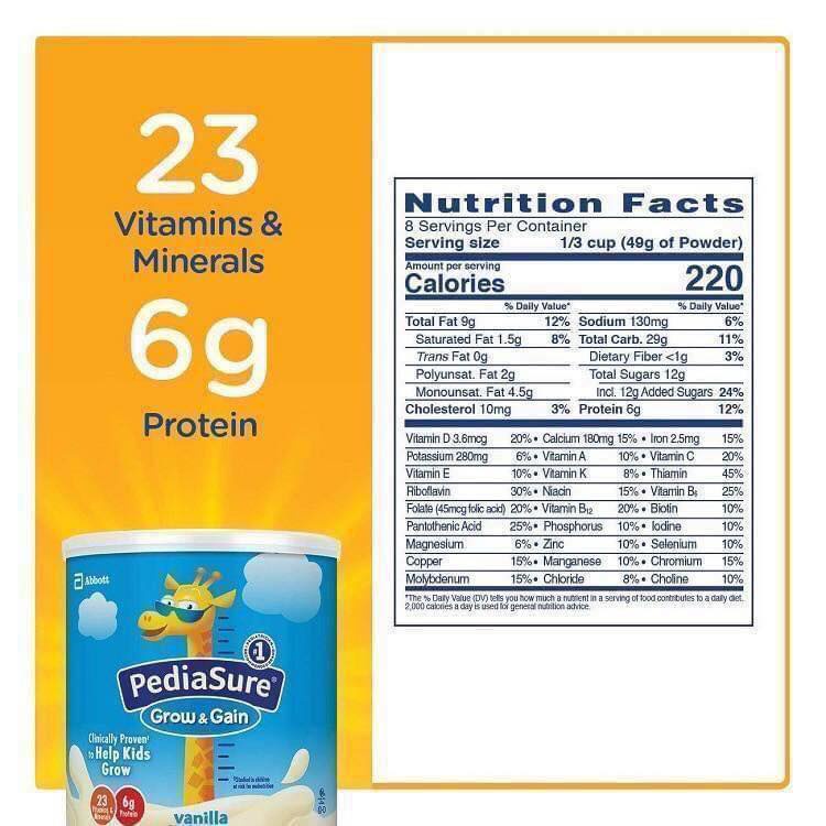 Sản phẩm Sữa bột Pediasure hươu cao cổ Pediasure Grow & Gain Hương vani 400g đang có giá bán là 375,000đ. Hiện tại, đang có hàng sẵn tại shop của chúng tôi trên sàn TMĐT Shopee. Quý khách có thể ĐẾN NƠI BÁN để vào shop chúng tôi đặt mua online, trả góp, ship hỏa tốc, thanh toán thẻ visa/master, thông tin xuất hóa đơn đỏ (VAT) hay cần có thêm nhiều thông tin về sản phẩm.