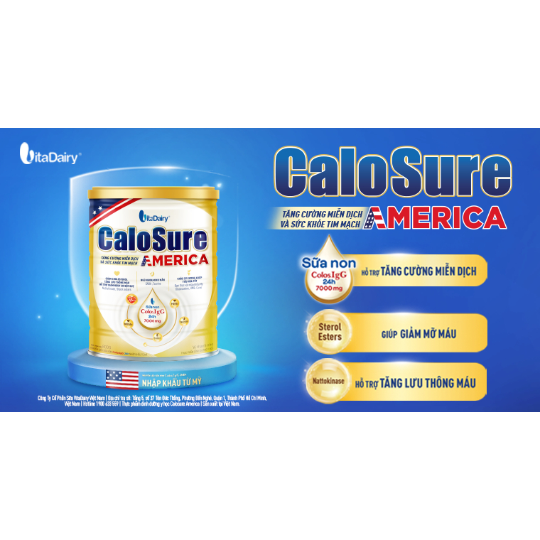 Calosure America - Giải pháp dinh dưỡng miễn dịch toàn diện – Với Sữa non ColosIgG 24h nhập khẩu trực tiếp từ Mỹ giúp Tăng cường miễn dịch, hệ dưỡng chất khoa học được lựa chọn ưu việt giúp Tăng cường sức khỏe tim mạch, Bảo vệ hệ Cơ – Xương – Khớp, Hỗ trợ tiêu hoá và Duy trì sức khỏe tổng thể.