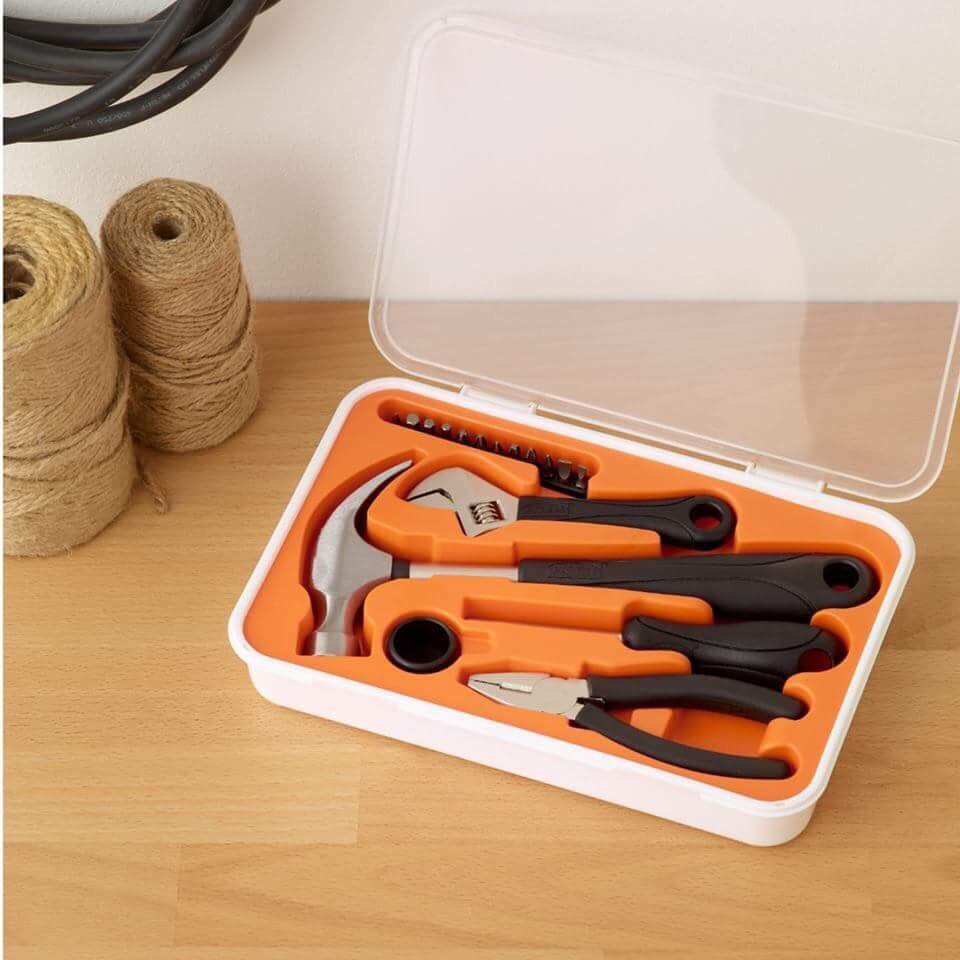 Gồm búa, tô vít, kìm, cờ lê, kẹp đinh và 12 đầu tô vít gia đình nào cũng cần có 1 bộ đó ạ