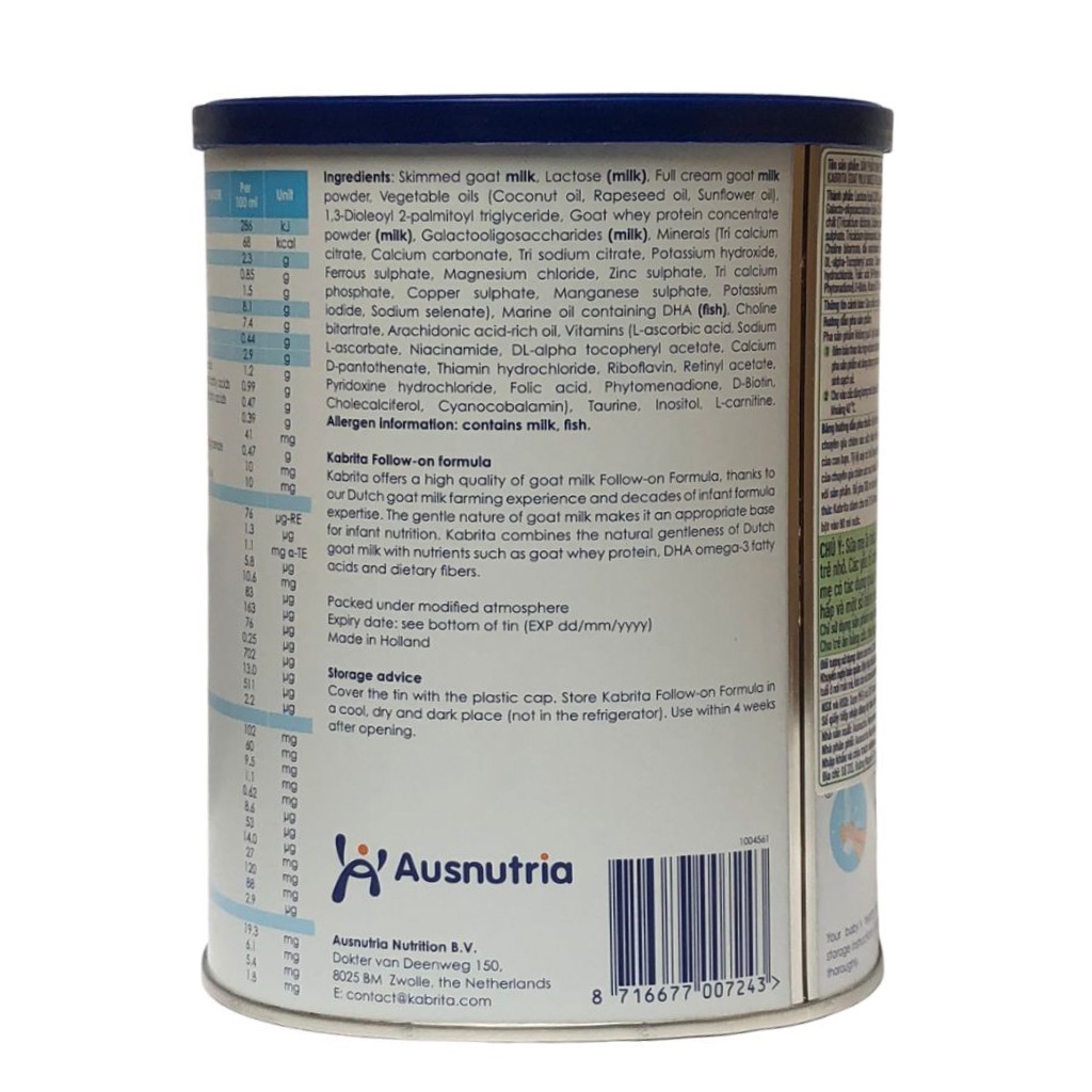 Giới thiệu Sữa Dê Kabrita hàng nhập khẩu nguyên lon từ Hà Lan số 2 hộp 800g