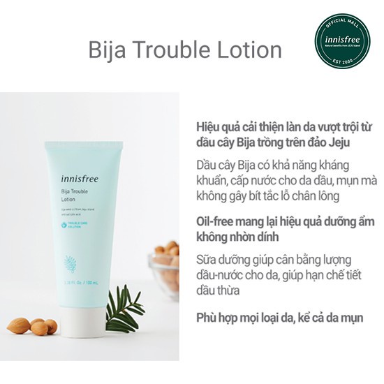 Giới thiệu Sữa dưỡng dành cho da mụn Innisfree Bija Trouble Lotion 100ml
