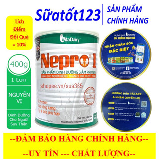 Cách dùng : - Hòa 3 muỗng (tương đương 28,8g sữa Nepro 1 Gold) với 100ml nước chín khuấy đều sẽ được 1 ly sữa khoảng 120ml cung cấp 120 Kcal. - Dùng 5-6 ly mỗi ngày hoặc theo hướng dẫn của cán bộ y tế. - Dung dịch sau khi pha sử dụng hết trong vòng 3h, Hộp sữa mở nắp dùng trong 4 tuần. Khối lượng : 400g. Sản xuất : Cty Cổ phần Sữa VitaDairy Việt Nam – VitaDairy