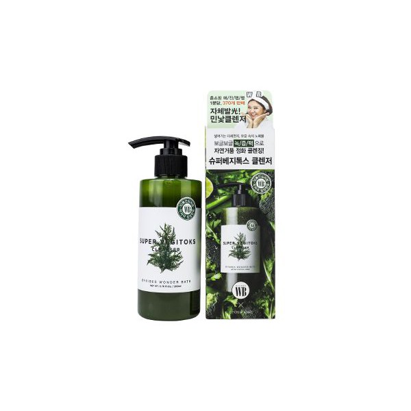 3. Siêu Rau Củ cung cấp dinh dưỡng, dưỡng da mềm mại, tươi sáng Super Vegitoks Cleanser chỉ vừa mới ra mắt tại thị trường Hàn Quốc được chị em săn lùng và đón nhận rất nhiệt tình nhờ công dụng 3 in 1 của sản phẩm như: tẩy trang, sữa rửa mặt và mặt nạ thải độc. Bảng thành phần xanh, rất giàu các chiết xuất thiên nhiên từ cần tây, cải bắp, quả cola, trà xanh, hồ tiêu, cà rốt, khoai tây, cà chua, rau diếp, chanh . Sản phẩm có kết cấu dạng gel lỏng nhẹ, có màu xanh của rau củ, khi thoa lên da, phần gel này sẽ nhanh chóng chuyển sang dạng bọt nhỏ li ti có tác dụng làm sạch và hỗ trợ thải độc cho da. Giúp làm sạch sa mà ko bị khô căng, da sáng mịn dần. Sản phẩm có 3 loại cho bạn lựa chọn: Xanh: chiết xuất từ chanh, bơ, trà xanh, rau diếp tăng cường vitamin, cấp ẩm tự nhiên cho da, làm sáng mờ thâm nám Hướng dẫn sử dụng sữa rửa mặt Super Vegitoks Cleanser Thoa gel đều khắp mặt. Sau khoảng vài phút phần gel này sẽ giải phóng oxy, nổi lên những hạt bọt nhỏ li ti, có tác dụng tẩy sạch lớp makeup bụi bẩn lại đồng thời len lỏi vào tận sâu trong lỗ chân lông để làm sạch da từ bên trong. Đợi từ 15 đến 20 giây là đã có thể rửa lại với nước.