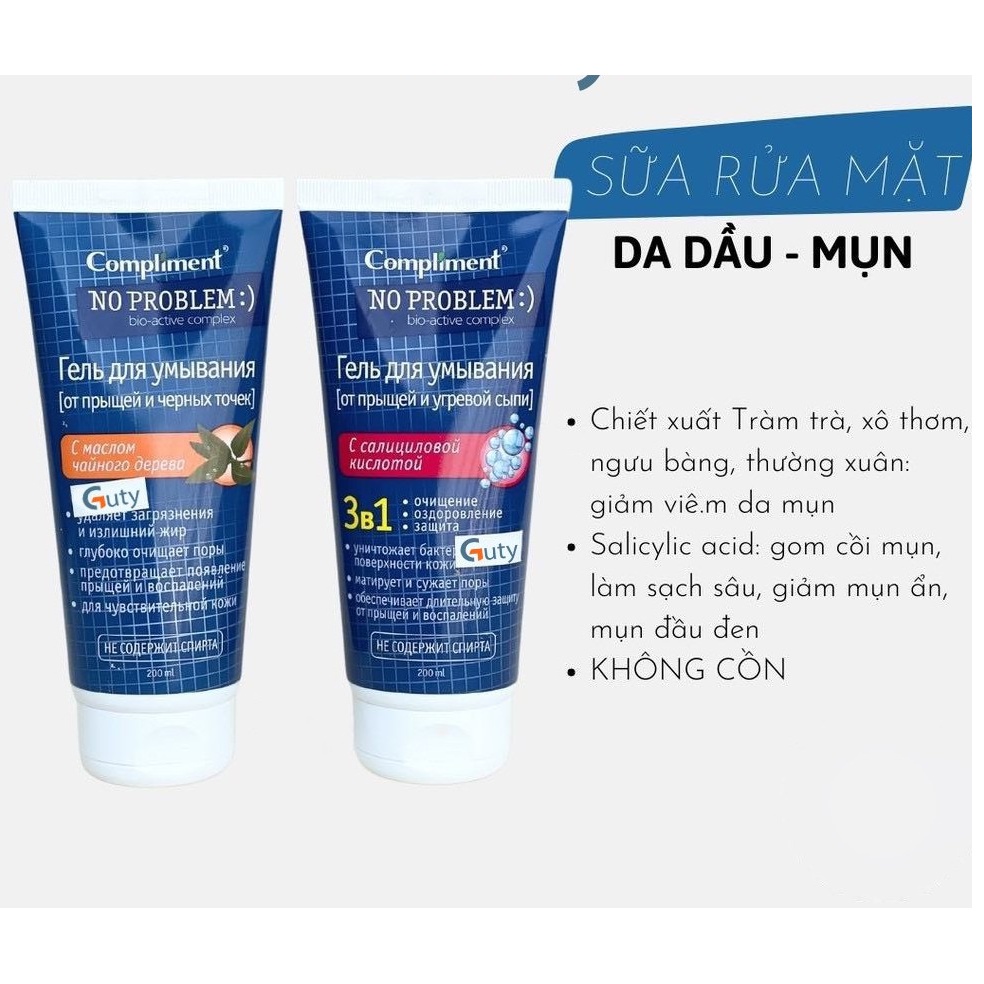 Giới thiệu Sữa rửa mặt Compliment No Problem 200ml ngăn ngừa mụn ,giảm viêm ,da dầu - soleil shop