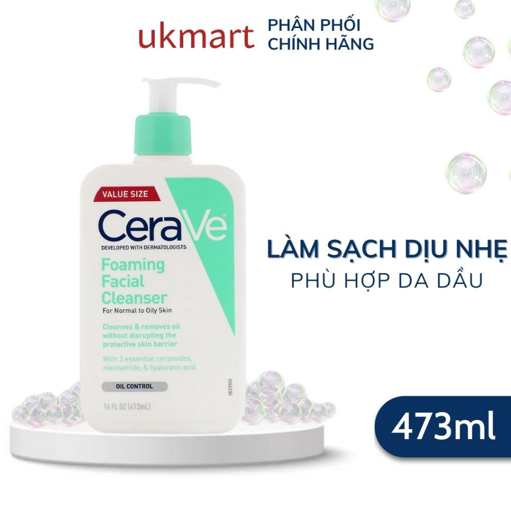 Sữa rửa mặt dành cho da dầu CeraVe Foaming Facial Cleans - Loại: Dành cho da thường đến da dầu - Xuất sứ: Mỹ - Dung tích: 20ml, 88ml (3oz), 236ml (8oz), 473ml (16oz) Cerave tạo bọt làm sạch da nhẹ nhàng loại bỏ bụi bẩn, dầu dư thừa và các tế bào da chết để lộ một khuôn mặt sạch sẽ, tươi mới. Công thức không gây kích ứng duy trì sự cân bằng độ ẩm lành mạnh, không bao giờ tước da, trong khi loại bỏ các vùng bóng, dầu. Bổ sung axit hyaluronic và ceramides tạo ra một rào cản da lành mạnh để khuôn mặt bạn cảm thấy thoải mái mà không có bất kỳ sự cứng hoặc khô.