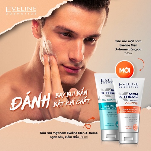 Giới thiệu Sữa rửa mặt nam Eveline Men X-treme sạch sâu, kiềm dầu 150ML