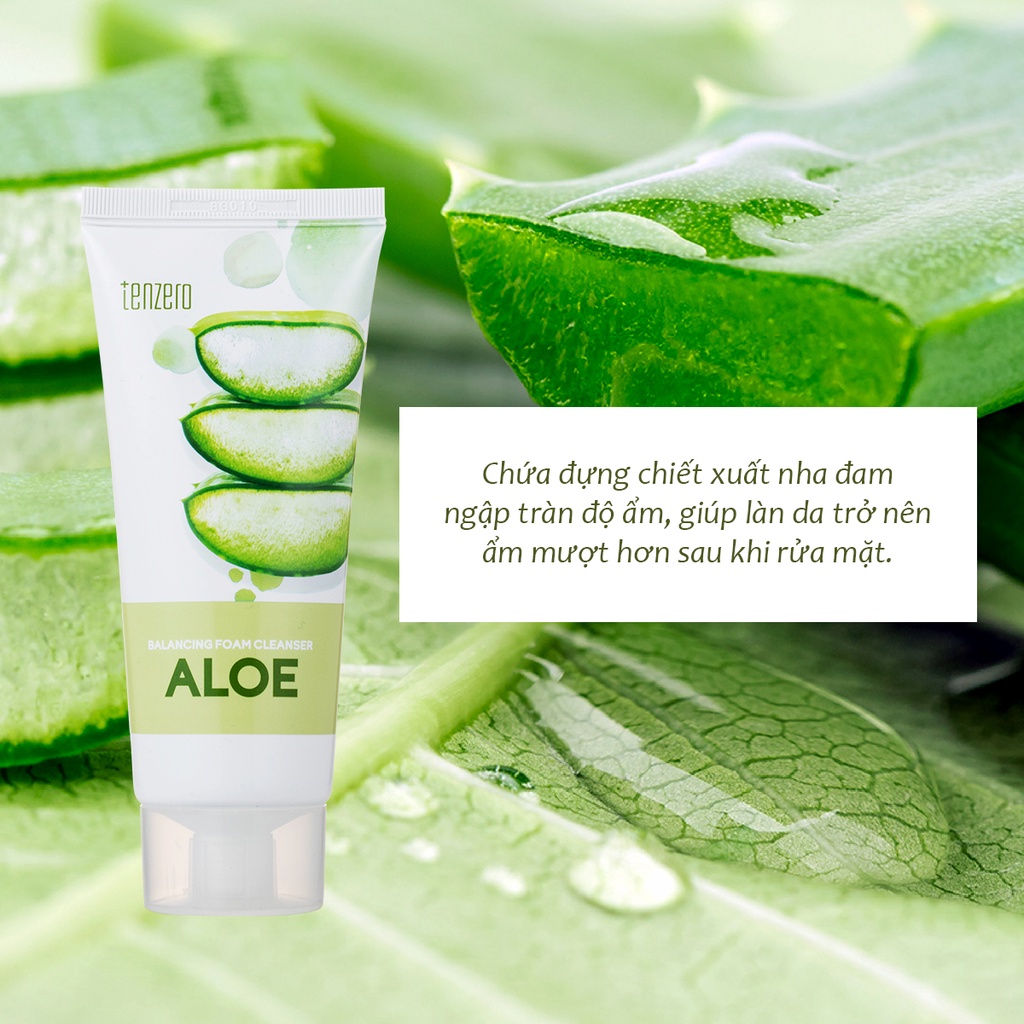 Giới thiệu Sữa rửa mặt Nha Đam cung cấp độ ẩm, làm sạch sâu Tenzero Balancing Foam Cleanser Aloe 100ml