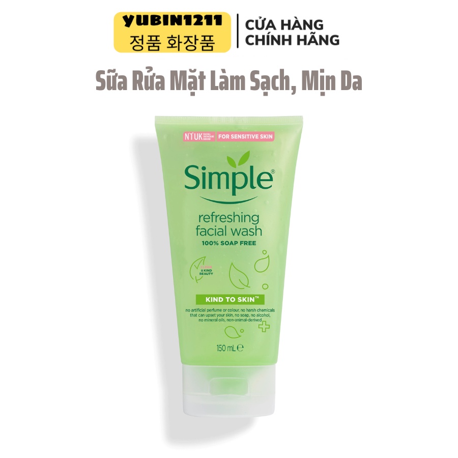 Giới thiệu Sữa rửa mặt Simple Kind To Skin Refreshing Facial Wash 150ml - Xanh lá