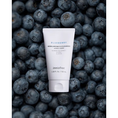 Sữa rửa mặt Innisfree Blueberry Rebalancing 5.5 Cleanser thuộc bộ sản phẩm Innisfree Blueberry Rebalancing có tác dụng chính là cân bằng lại độ pH và dưỡng ẩm cho da. Bộ sản phẩm này thuộc dòng sản phẩm mới SUPER FOOD, lấy cảm hứng từ các loại thực vật như rau cải xoăn, quả berry, yến mạch, súp lơ… là những thực phẩm giàu chất chống oxy hóa nhất.