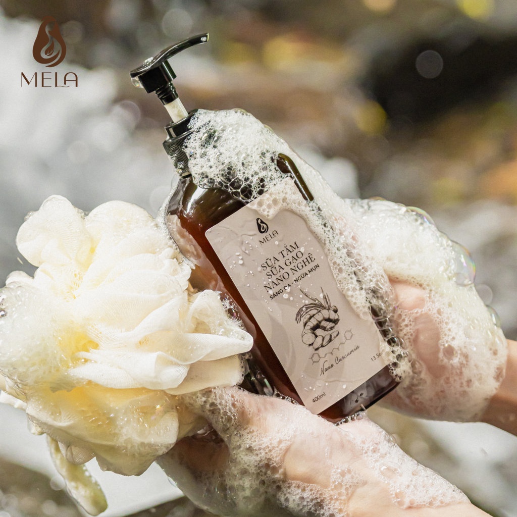 Sắc Đẹp > Tắm & chăm sóc cơ thể > Xà phòng & sữa tắm > Sữa tắm dưỡng ẩm dưỡng da MELA với NANO nghệ, và chiết suất từ gạo, giảm mụn mờ thâm và sáng da (400ml)