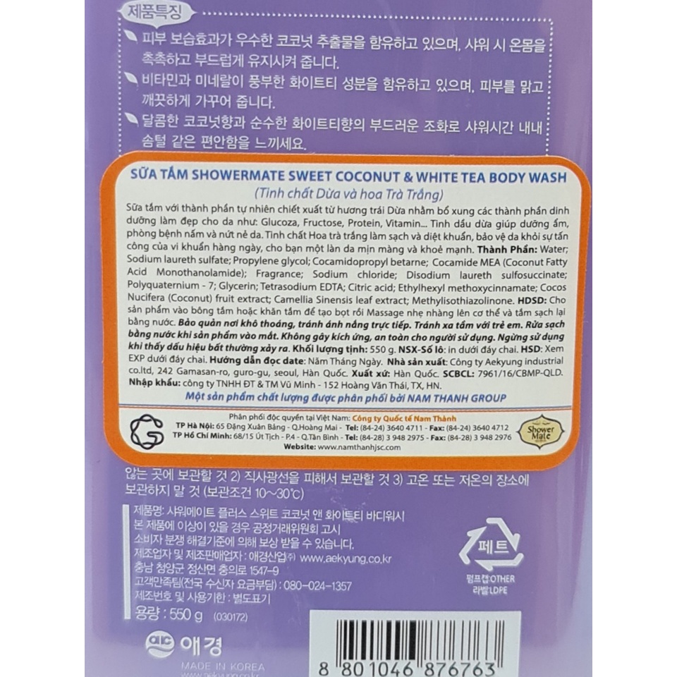 Giới thiệu Sữa Tắm Dưỡng Ẩm Trắng Da Shower Mate Plus 550ml Hàn Quốc