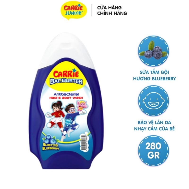 Giới thiệu Sữa Tắm Gội Sạch Khuẩn cho bé Carrie Junior BacBuster Blueberry 280g