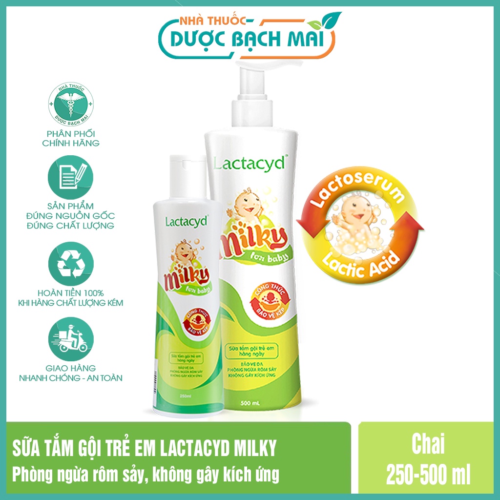 ✅ Sữa Tắm Gội Trẻ Em Lactacyd Milky (250ml) là một sản phẩm của Sanofi tập đoàn chăm sóc sức khỏe đa dạng hàng đầu thế giới, thích hợp cho trẻ sơ sinh, giúp tắm gội sạch sẽ cho trẻ cả tóc và toàn thân bé mà không làm khô da bé.