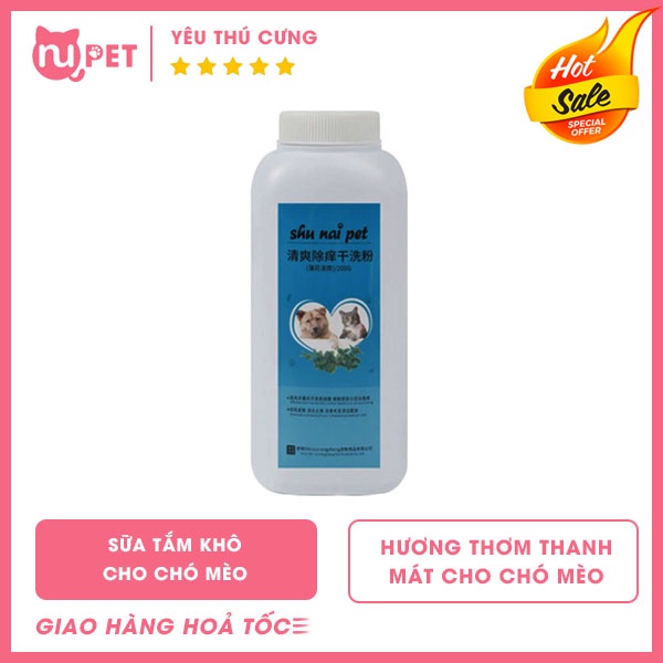 😻Sữa tắm khô Shu nai pet dành cho chó mèo với 3 mùi hương và với mỗi mùi hương là một công dụng đặc biệt. Sản phẩm dùng để loại bỏ mùi hôi, chống viêm nhiễm, diệt ve, rận chó và còn bảo vệ, làm mượt lông thú cưng.
