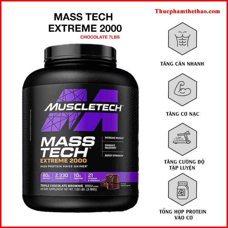 Sức Khỏe > Thực phẩm chức năng > Hỗ trợ tăng cơ > Sữa tăng cân Mass Tech Extreme 2000 6lbs (2.72Kg) - Muscletech USA - Mùi Chocolate, Vani - Kèm quà tặng