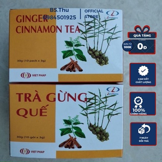 TRÀ GỪNG QUẾ VIỆT PHÁP hộp 10 gói - hỗ trợ làm ấm cơ thể, nâng huyết áp