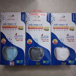 Khẩu trang y tế 4D Tritydo Tritydomask Luxury 4 lớp giấy kháng khuẩn siêu vừa vặn, ngăn virus