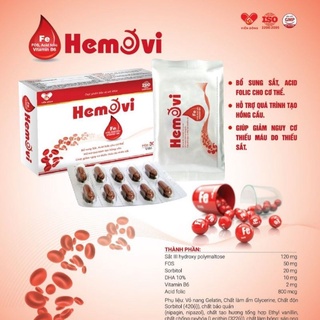 HEMOVI bổ sung sắt hữu cơ và acid forlic hỗ trợ tạo hồng cầu hộp 30 viên