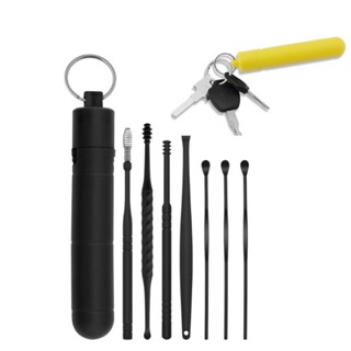 Bộ dụng cụ lấy ráy tai chuyên nghiệp 6 món cao cấp bằng thép không rỉ- Tặng kèm hộp đựng hình trụ treo khóa