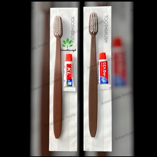[100] Bàn chải nâu cao cấp kèm kem đánh răng đút túi trắng sữa cho khách sạn, resort, homestay -nhận in logo